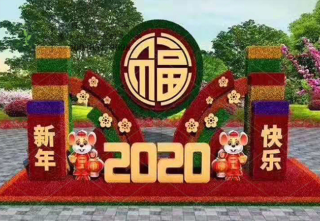立体花坛2020新年快乐