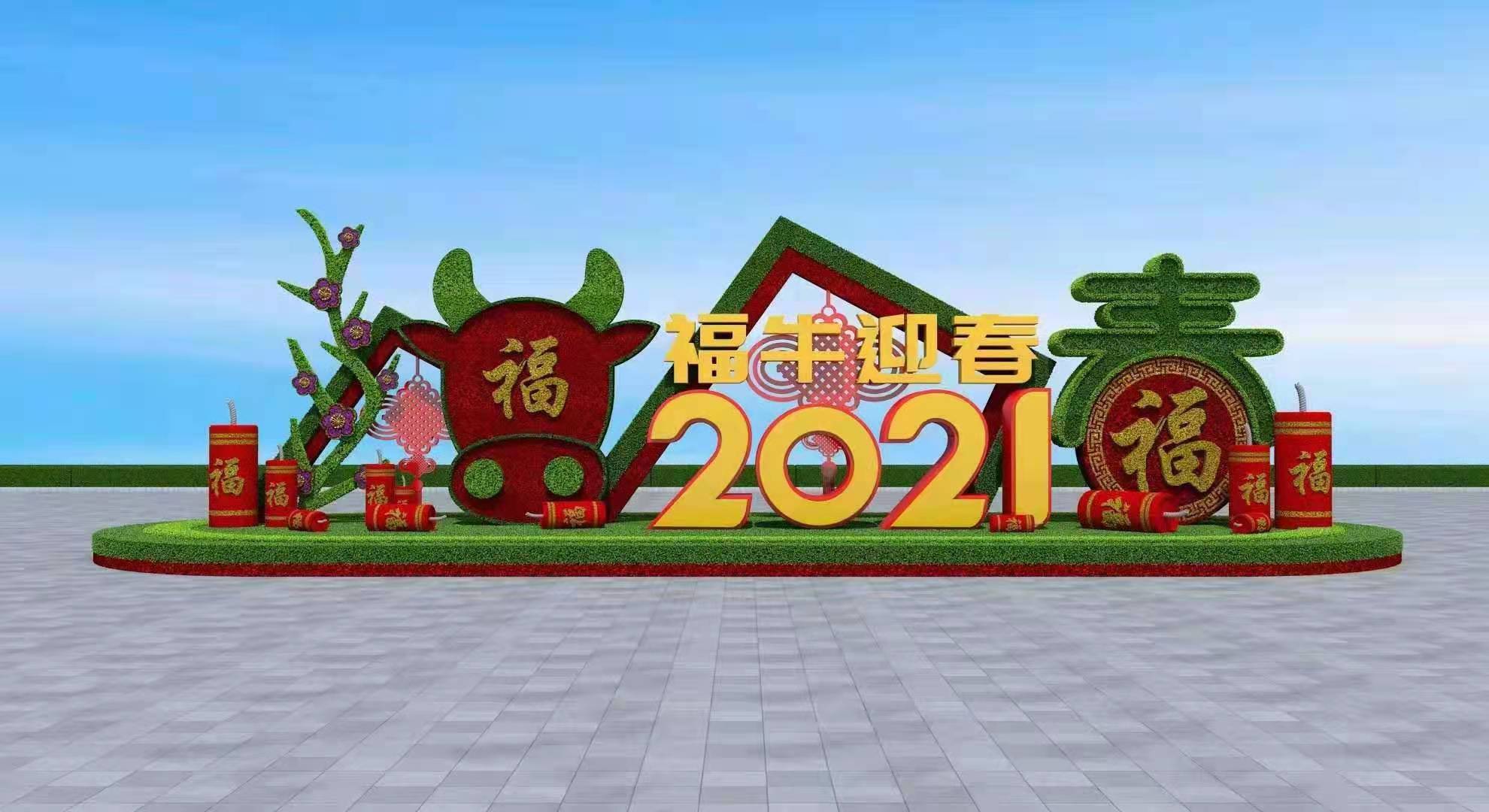 仿真绿雕2021牛年绿雕